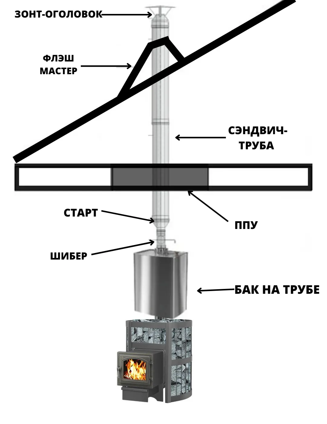 Комплект №5 "Дымоход для бани с баком на трубе"