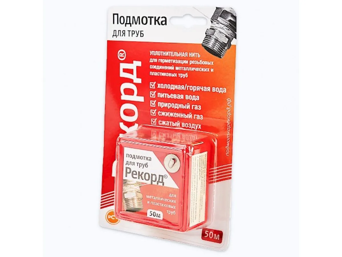 Подмотка Рекорд - это полимерная нить, пропитанная специальным герметизирующим составом - уплотнительный материал последнего поколения, который обеспечивает надежную герметизацию и защищает соединение от коррозии.