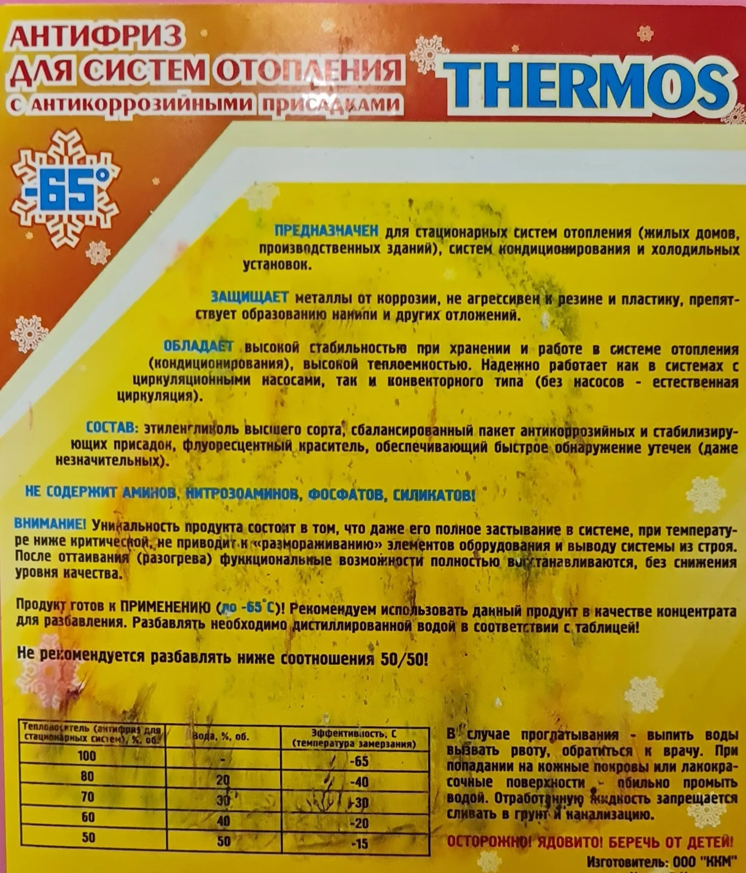 | температура начала кристализации | Теплоноситель | Вода |