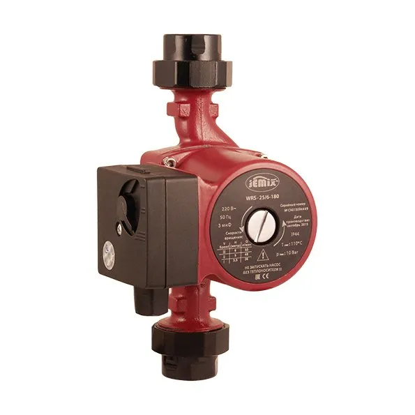 Циркуляционный насос с резьбовым подсоединением JEMIX WRS 25/6-180 служит для перекачки чистых теплоносителей, схожих по составу и вязкости с водой, возможно присутствие 40% этиленгликолевых примесей, в одно и 2-трубных бытовых магистралях отопления и подпольных обогревательных системах. Запитывается от бытовой однофазной сети 220 В 50 Гц.