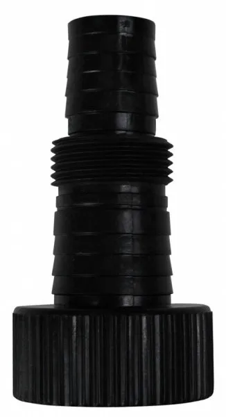 - Достаточно широкий выходной резьбовой патрубок на 1.5 дюйма из нержавеющей стали дополнительно комплектуется универсальным переходником из технопластика для подсоединения шлангов разных диаметров: